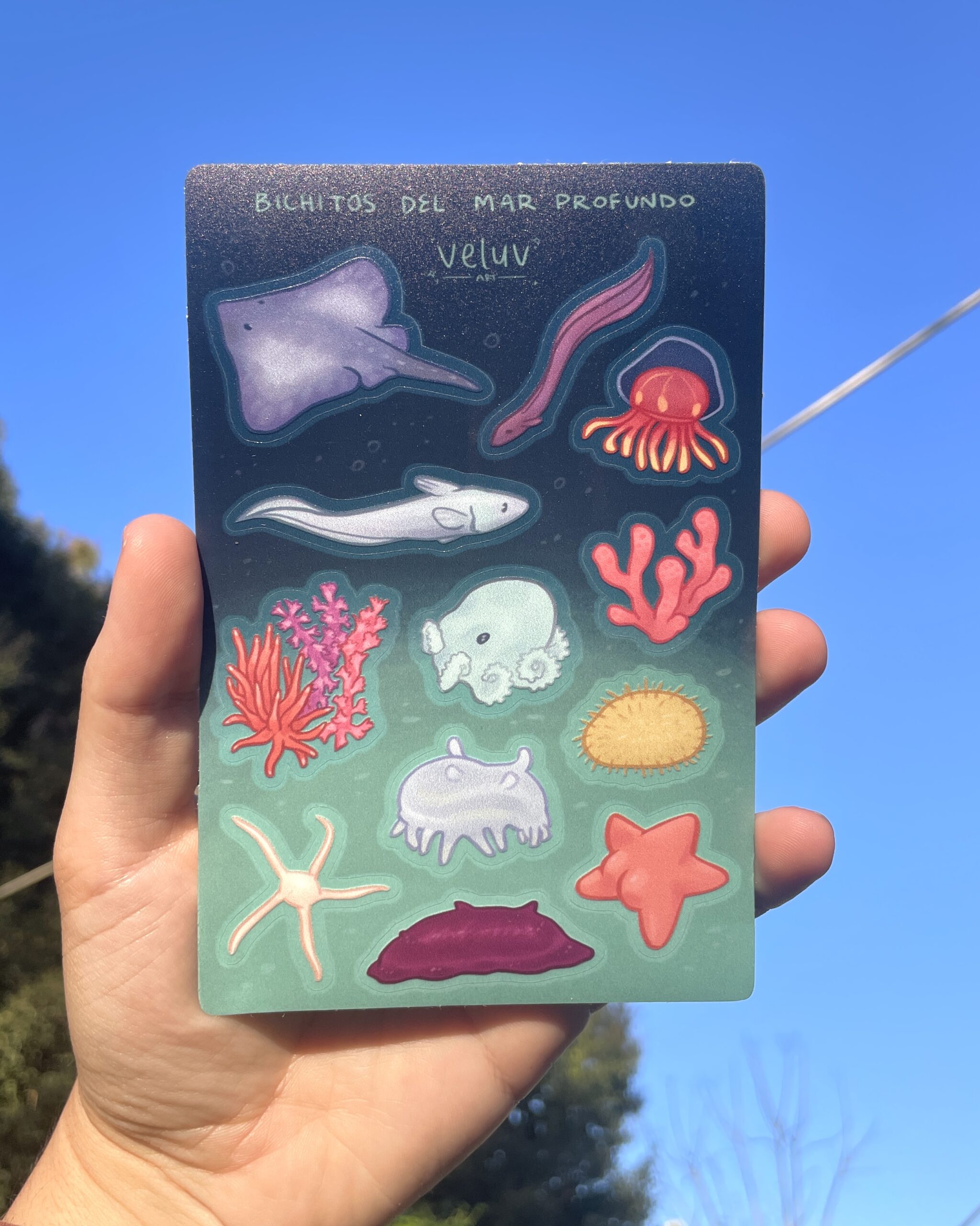 PLANCHITA DE STICKERS SUBMARINOS, BICHITOS DEL MAR PROFUNDO