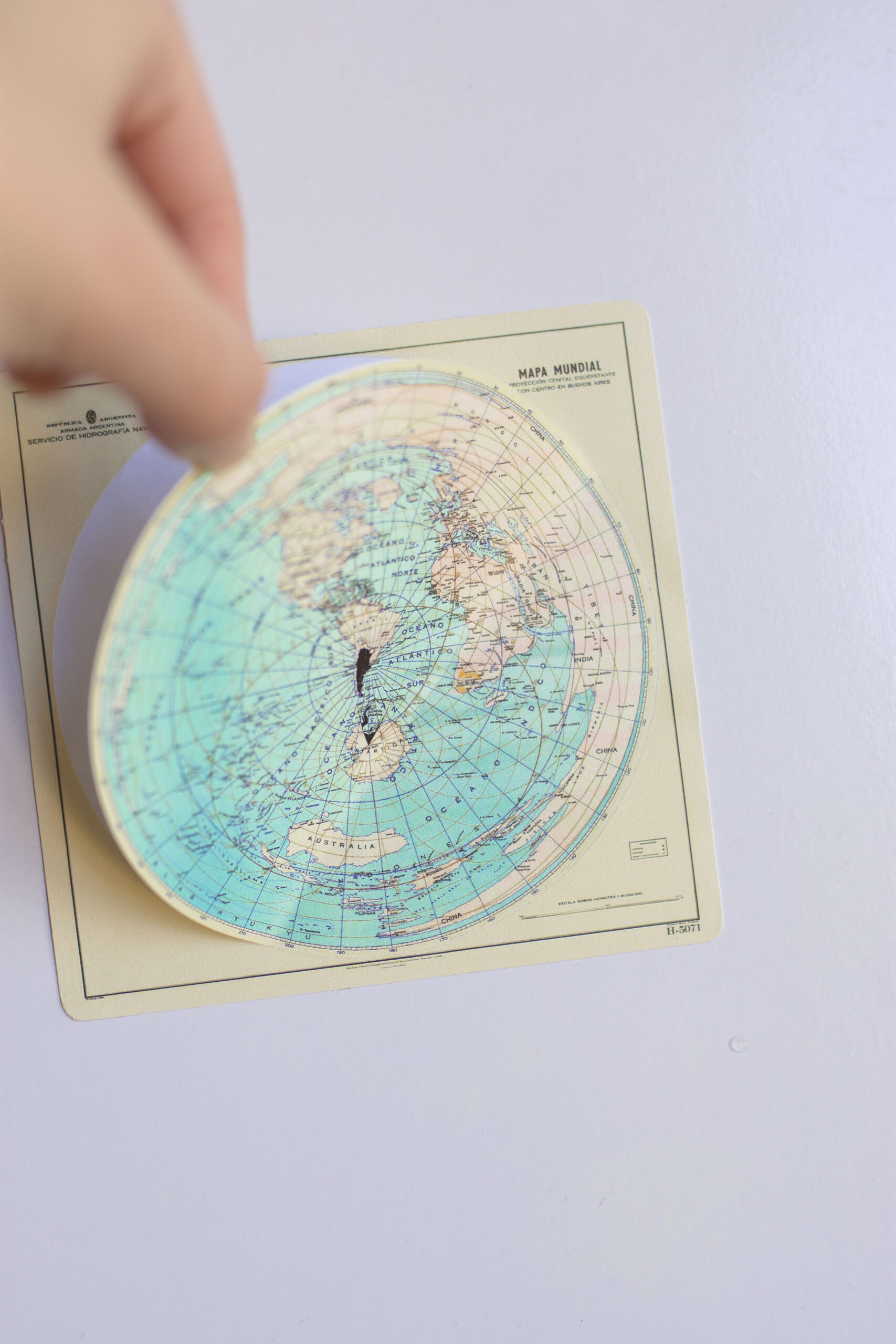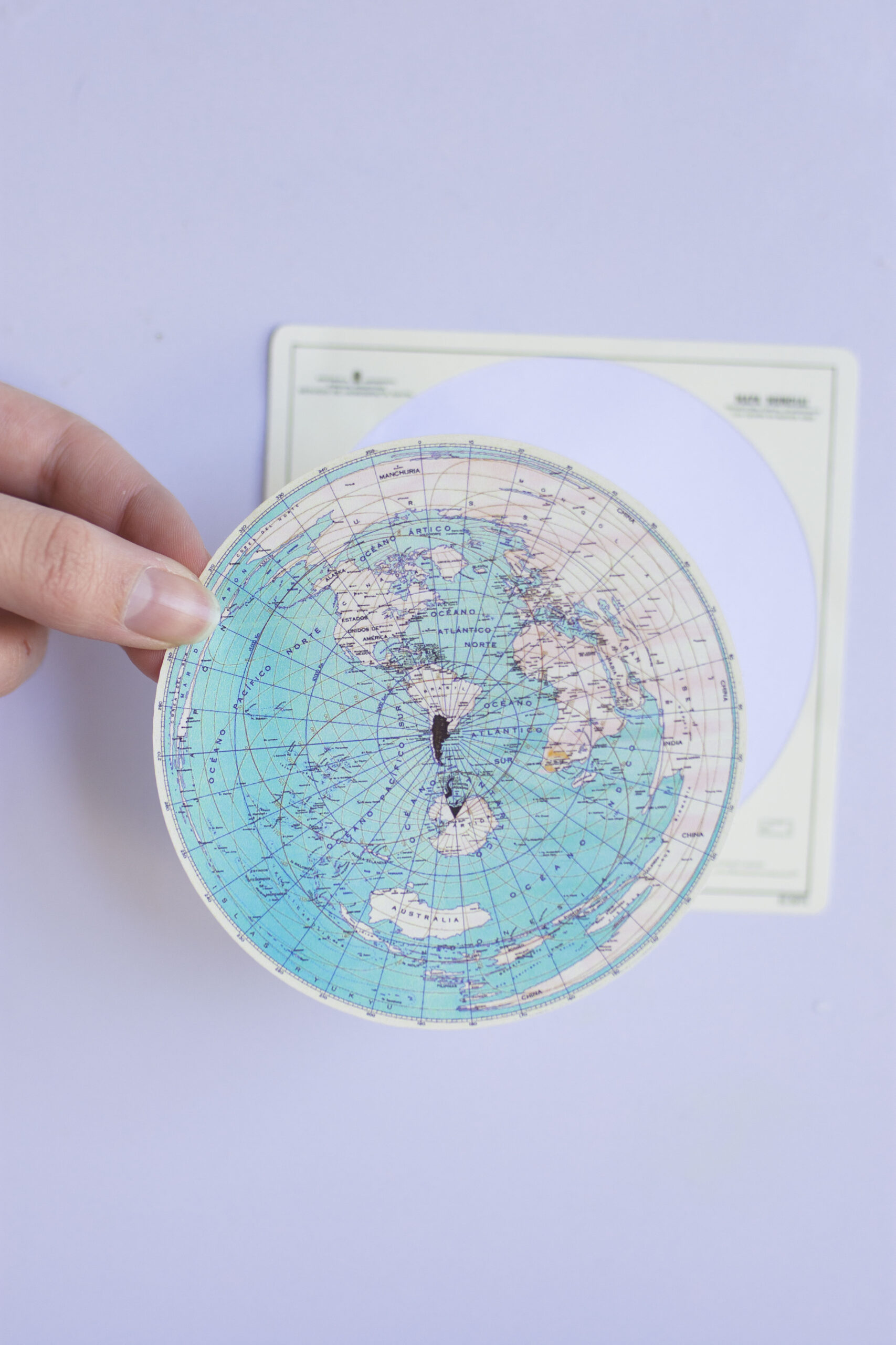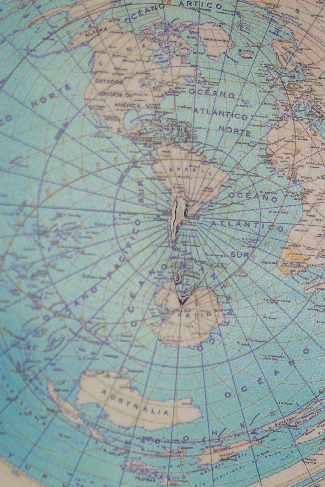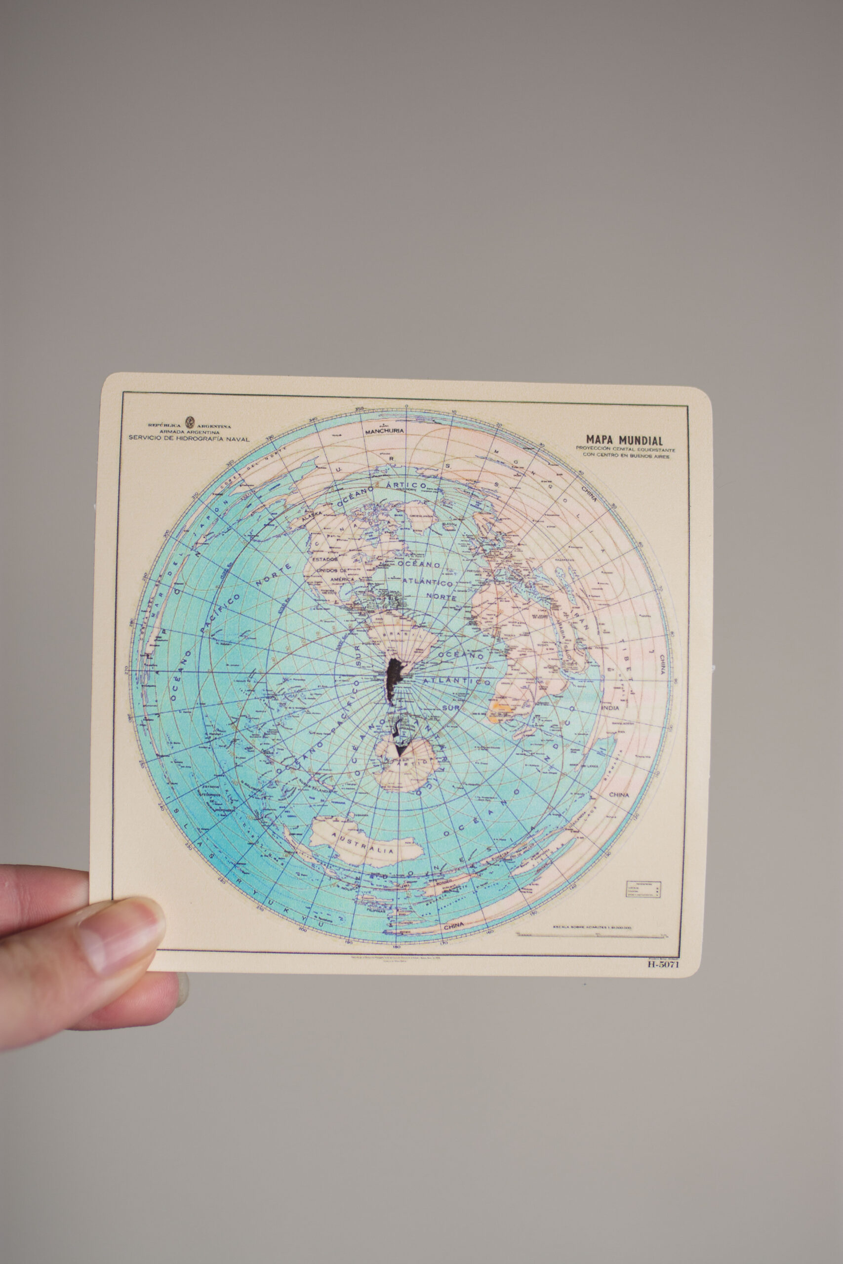 Mapa mundial con proyección cenital equidistante con centro en Buenos Aires, Argentina. (Carta H-5071. S.H.N)